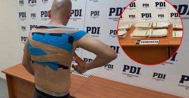 Los detenidos intentaron ingresar la droga al país adosada a su cuerpo con fajas de confección...