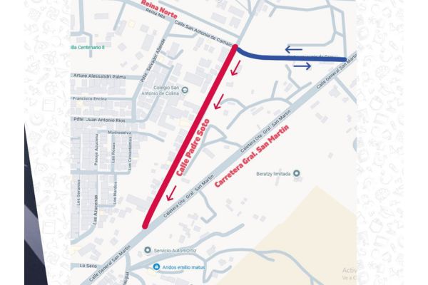 Desde el jueves 26 de febrero de 2026, la calle Padre Soto operará con tránsito unidireccional en sentido norte-sur, en ambas pistas de circulación, entre calle Reina Norte y la Carretera General San Martín.