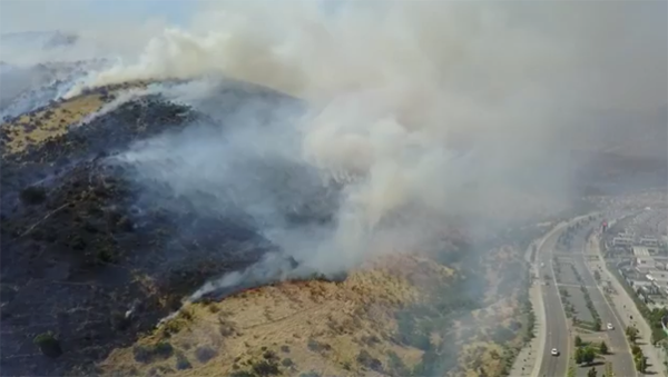 Continúan expandiéndose las llamas del gran incendio forestal que está afectando los cerros al norte de avenida José Rabat.