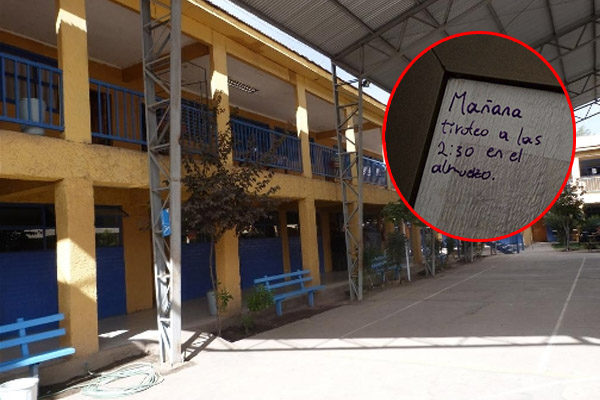 Según indicaron en el documento, en los muros de los baños de damas del recinto se encontraros rayados señalando que “mañana hay tiroteo”. Ante el hallazgo, el colegio puso en marcha un protocolo de seguridad y realizó la denuncia ante las autoridades, entregando todos los antecedentes disponibles para el inicio de la investigación.