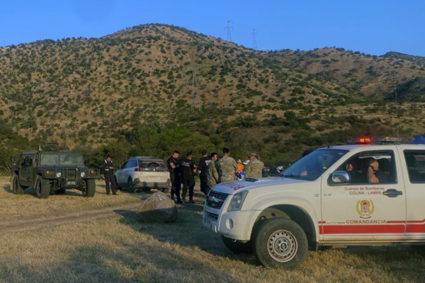 Según informaron desde Bomberos de Colina – Lampa, los voluntarios fueron despachados a las 13:15, con cuatro carros y personal de rescate especializado. Las labores se concentran en la ubicación Santa Gemita Los Corrales, Villa Peldehue, sector que pertenecería al Ejército de Chile, donde también colaboran Carabineros, Seguridad Municipalidad y vecinos del sector.