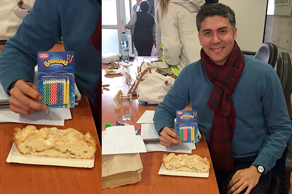 Para todos fue una sorpresa. En pleno Concejo Municipal, y mientras le comentaba temas pendientes al alcalde Mario Olavarría, el concejal Andrés Vásquez sacó una torta y un paquete de velas de cumpleaños.