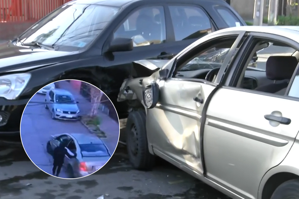 Para frustrar el robo, el hombre lanzó las llaves de su vehículo lejos, pero los delincuentes escaparon rápidamente y colisionaron con un auto negro y una motocicleta. Los conductores de ambos vehículos resultaron lesionados.