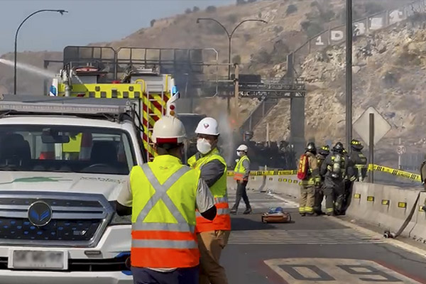 Bomberos permanece en el lugar realizando labores de enfriamiento de la calzada para avanzar hacia una posible reapertura del tránsito. La decisión será analizada al mediodía por autoridades, Carabineros y la concesionaria de la autopista.