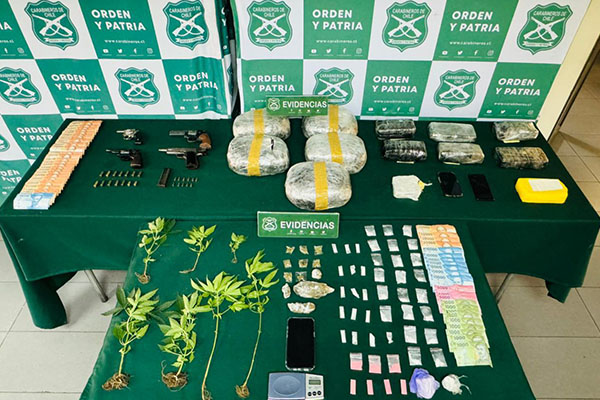 En específico, la capitán María Belén Galaz, del Departamento OS-7, informó que durante este operativo las drogas encontradas en mayor cantidad fueron marihuana (8 kg) y pasta base (6 kg). Asimismo, detalló que se retiró de circulación una pistola con su número de registro borrado y dos armas a fogueo modificadas para poder disparar.