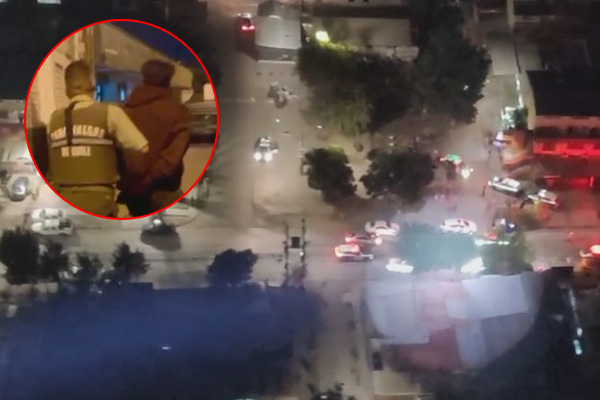 Posteriormente, el automóvil en el que se trasladaba la banda criminal fue localizado en la comuna de Cerrillos, donde personal policial procedió a su fiscalización. Al advertir la presencia de Carabineros, los sujetos evadieron el control, iniciándose un seguimiento controlado que contó con apoyo aéreo de la Prefectura Aeropolicial.