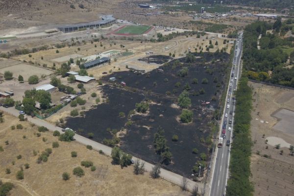 Un incendio en pastizales se originó este mediodía en avenida Chicureo, en las cercanías de la rotonda Piedra Roja, comuna de Colina.