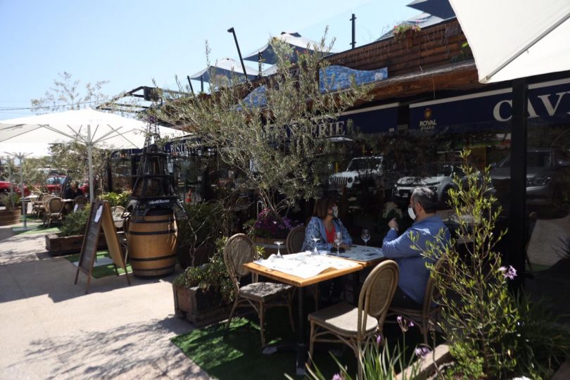 El local tuvo que organizar la terraza e implementar todos los protocolos establecidos por las autoridades tales como la toma de temperatura, alcohol gel al ingresar, distanciamiento entre mesas, cubiertos individuales y sellados, entre otras medidas.