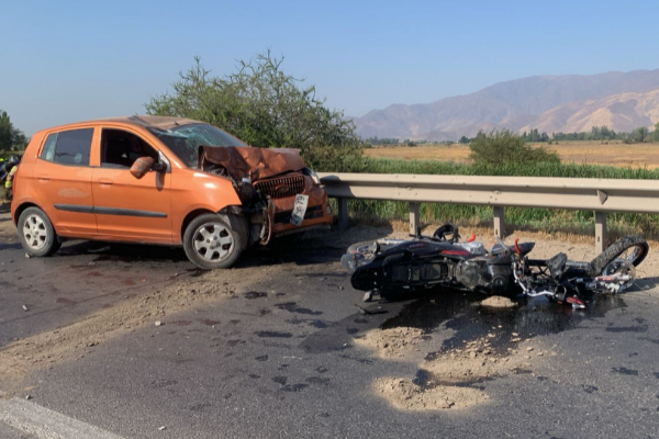 Cerca de las 09:00 horas de este sábado 24 de enero, se registró un nuevo accidente de tránsito de alta energía en Ruta G-16, conocido como camino Lo Echevers, en el que se vieron involucrados un vehículo paticular y una motocicleta.