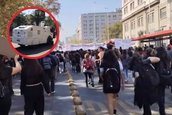 Durante el recorrido, los manifestantes intentaron avanzar por las inmediaciones del Palacio de La Moneda, pero fueron contenidos por personal de Carabineros, lo que marcó uno de los momentos de mayor tensión de la jornada.