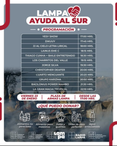 De manera inédita, la comuna de Lampa organizó la Jornada Solidaria “Lampa ayuda al Sur”, un evento familiar que combina presentaciones artísticas con la recolección de insumos para los damnificados.