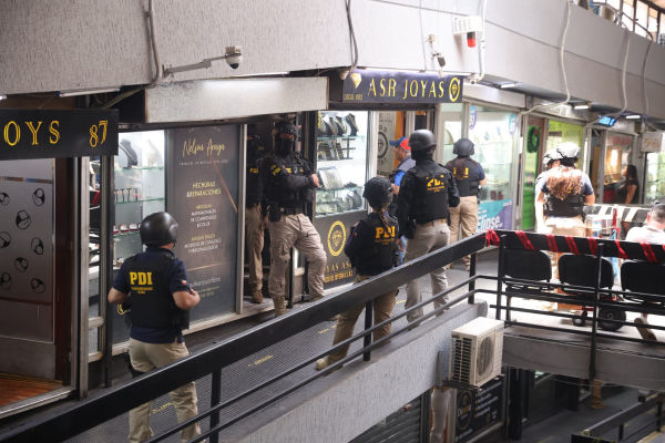 El procedimiento se realiza en una galería ubicada en calle Santo Domingo, a pasos de la intersección con 21 de Mayo, donde se concentran decenas de locales dedicados a la compra y venta de joyas.