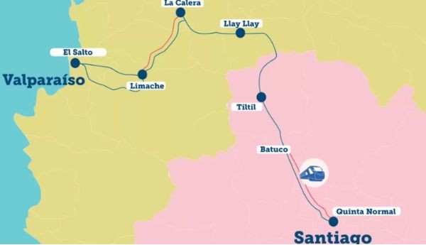 El trazado considera un recorrido de 172 kilómetros, conectando Quinta Normal con El Salto, en Viña del Mar, pasando por La Calera y Limache.