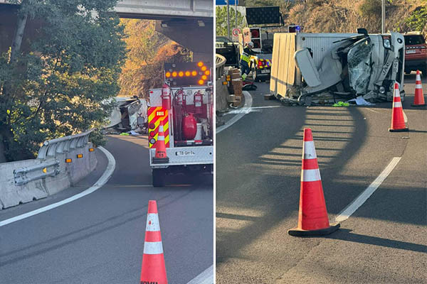 De acuerdo con lo señalado por Transporte Informa a través de su cuenta de X, el siniestro se produjo luego de que un camión impactara contra las barreras de contención y terminara volcado.