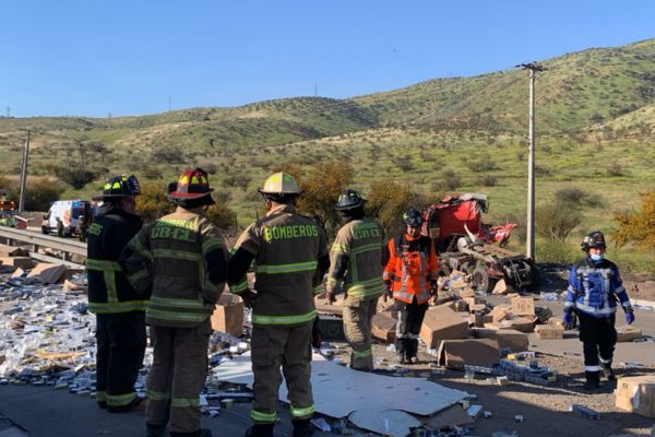 Un grave accidente se registró esta tarde en la Ruta 5 Norte, a la altura del kilómetro 33, comuna de Lampa, cuando un tractocamión con semirremolque —que aparentemente transportaba cigarrillos de contrabando— perdió el control por causas que aún se investigan.