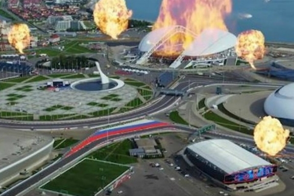Como se puede apreciar en la simulación, se ve como algunos recintos de la organización, incluido uno de los estadios donde se disputa el certamen. El regitro viene acompañado de un mensaje que dice «comenzará el terror».