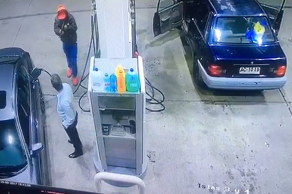 “Un auto azul ingresó a la estación, dio una vuelta preliminar alrededor de las islas como si estuviese eligiendo en cuál cargar combustible. Había un cliente en la isla central cargando bencina y el auto se detuvo en la misma isla pero en el otro canal y desde éste se bajaron dos personas imposibles de identificar porque tenían los rostros cubiertos”, indicó Fernando Lobos, propietario de la estación, a Chicureo Hoy.