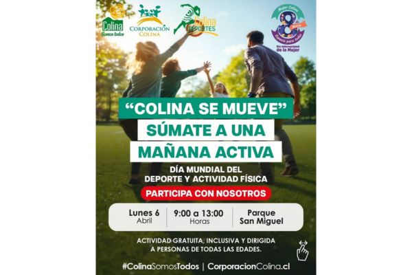 El lunes 6 de abril, entre las 09:00 y 13:00 horas, el Parque San Miguel será escenario de una jornada deportiva gratuita e inclusiva para toda la comunidad, en el marco del Día Mundial de la Actividad Física.