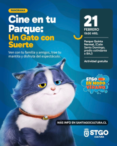 El programa municipal “Cine en tu Parque” cierra su ciclo de verano con la película familiar Un Gato con Suerte, cinta animada que narra la historia de Beckett, un gato que pierde su novena vida y debe replantear su forma de enfrentar el mundo.